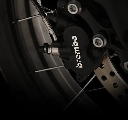 Priekyje – dvigubi plaukiojantys diskai su Brembo dviejų stūmoklių suportais. Gale – vienas diskinis stabdis su Brembo vieno stūmoklio suportu. Ši sistema užtikrina išskirtinį stabdymo tikslumą ir patikimumą.