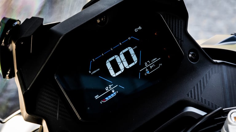 Ryškus spalvotas LCD ekranas aiškiai pateikia visą svarbiausią informaciją – nuo greičio iki navigacijos, užtikrindamas modernų ir patogų vairavimą.