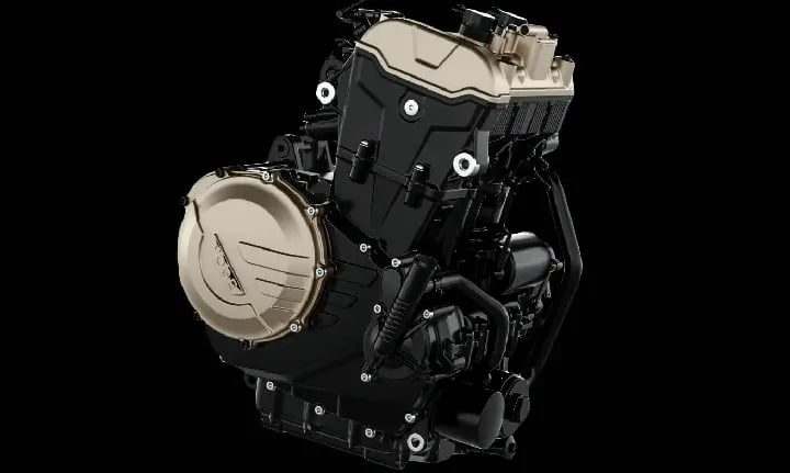 Dviejų cilindrų, 8 vožtuvų, skysčiu aušinamas DOHC variklis.