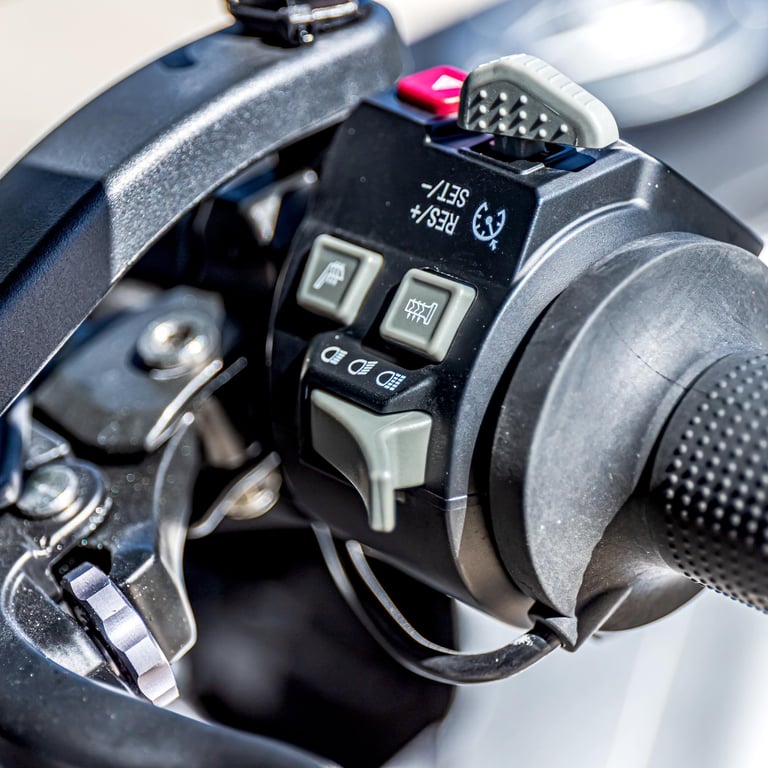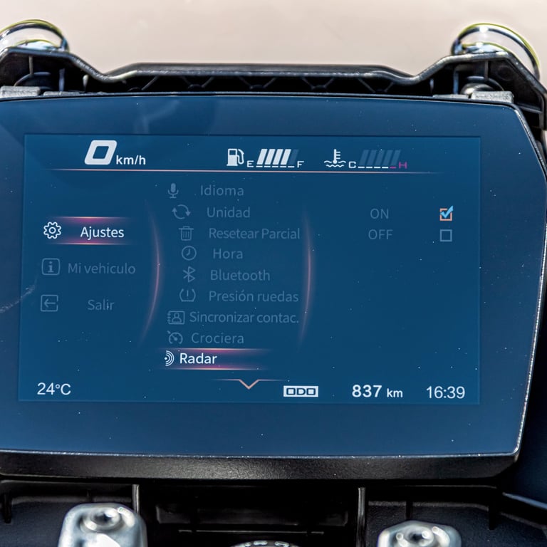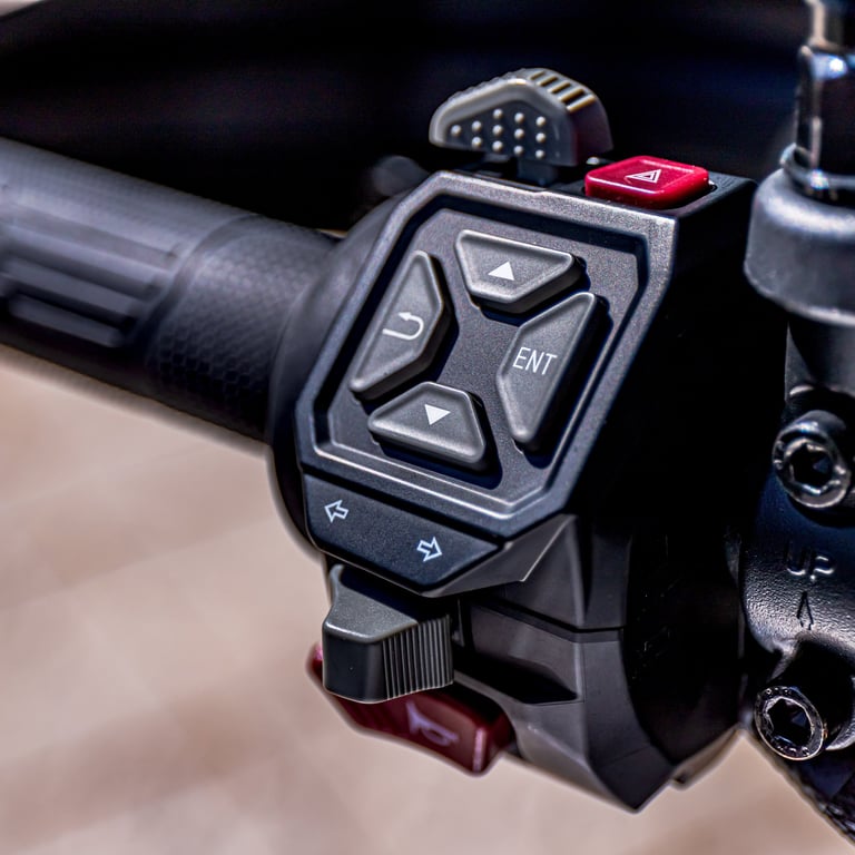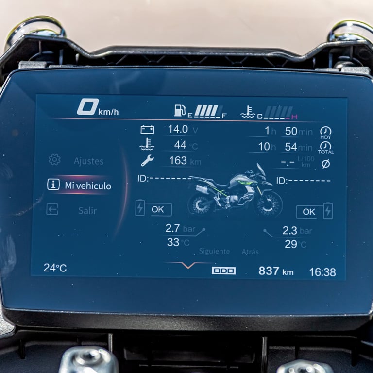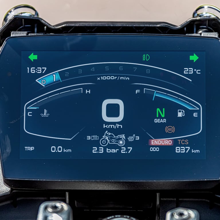 Brembo diskiniai stabdžiai, ABS ir TCS sistemos užtikrina saugumą ir kontrolę, o TFT ekranas suteikia visą reikiamą informaciją viename moderniame valdymo centre.