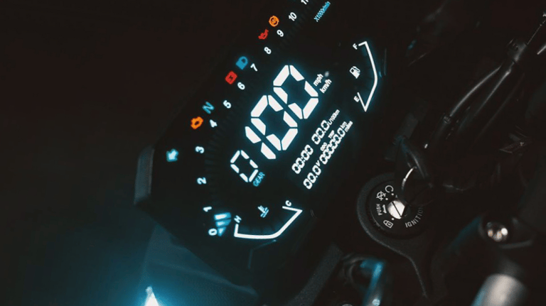 LCD prietaisų skydelis, kuris turi aiškų vizualinį efektą ir atrodo stilingai.
